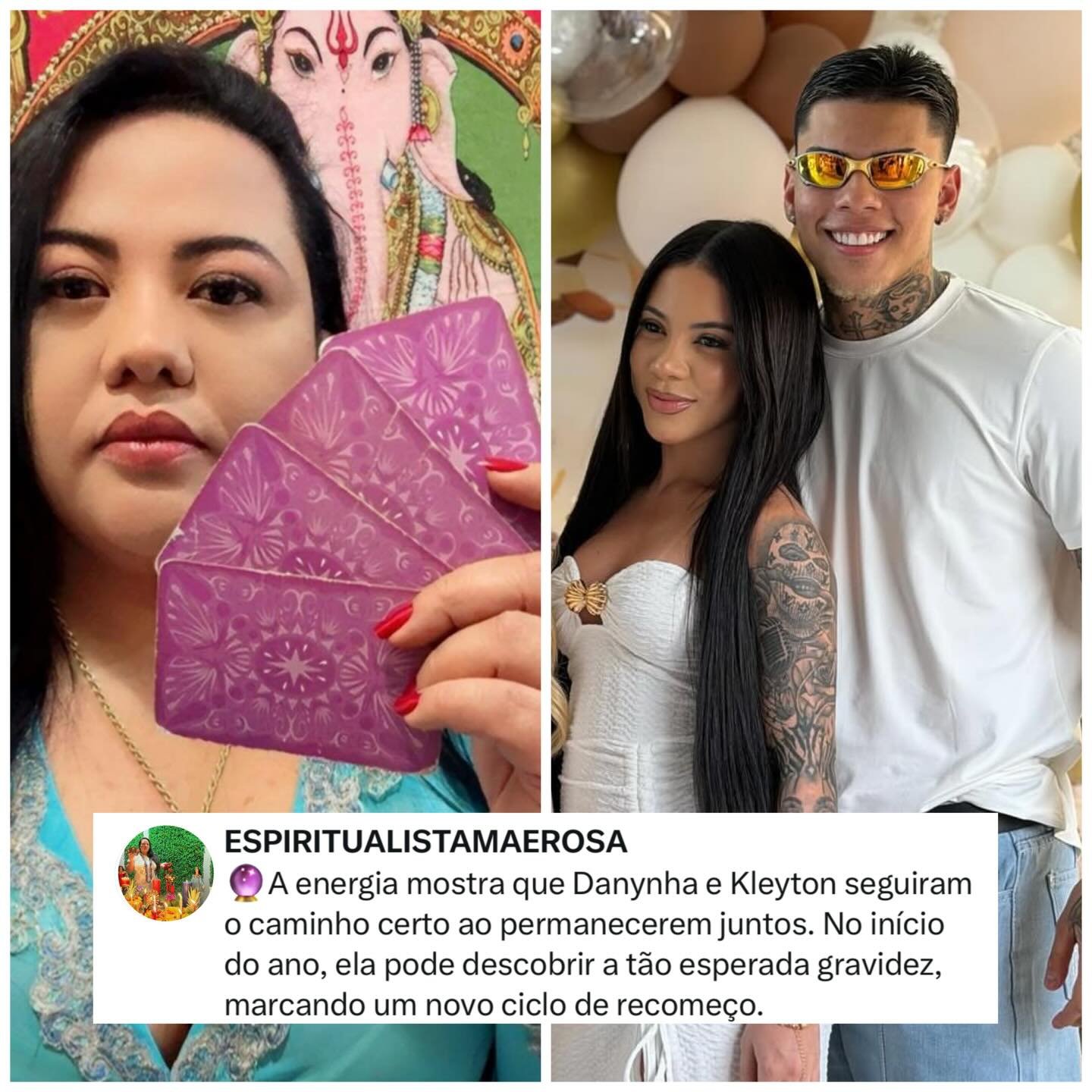 🌟✨ A @espiritualistamaerosa compartilhou uma revelação incrível: a energia de Danynha e Kleyton está radiante! No começo do ano, eles podem receber a maravilhosa notícia sobre uma tão esperada gravidez, inaugurando um novo ciclo de recomeços e felicidade! O que vocês acharam? 😍👏🏻