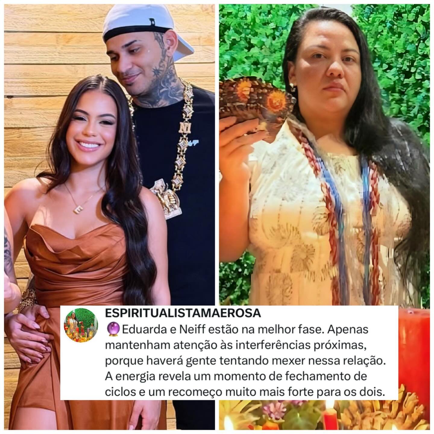 ✨💖 Eduarda e Neiff estão vivendo um momento incrível! A @espiritualistamaerosa deslumbrou que a energia deles brilha intensamente, indicando um poderoso recomeço, mesmo diante de algumas interferências externas. A força desse amor só parece aumentar! 💪❤️ O que vocês acham dessa união? 😍👏🏻