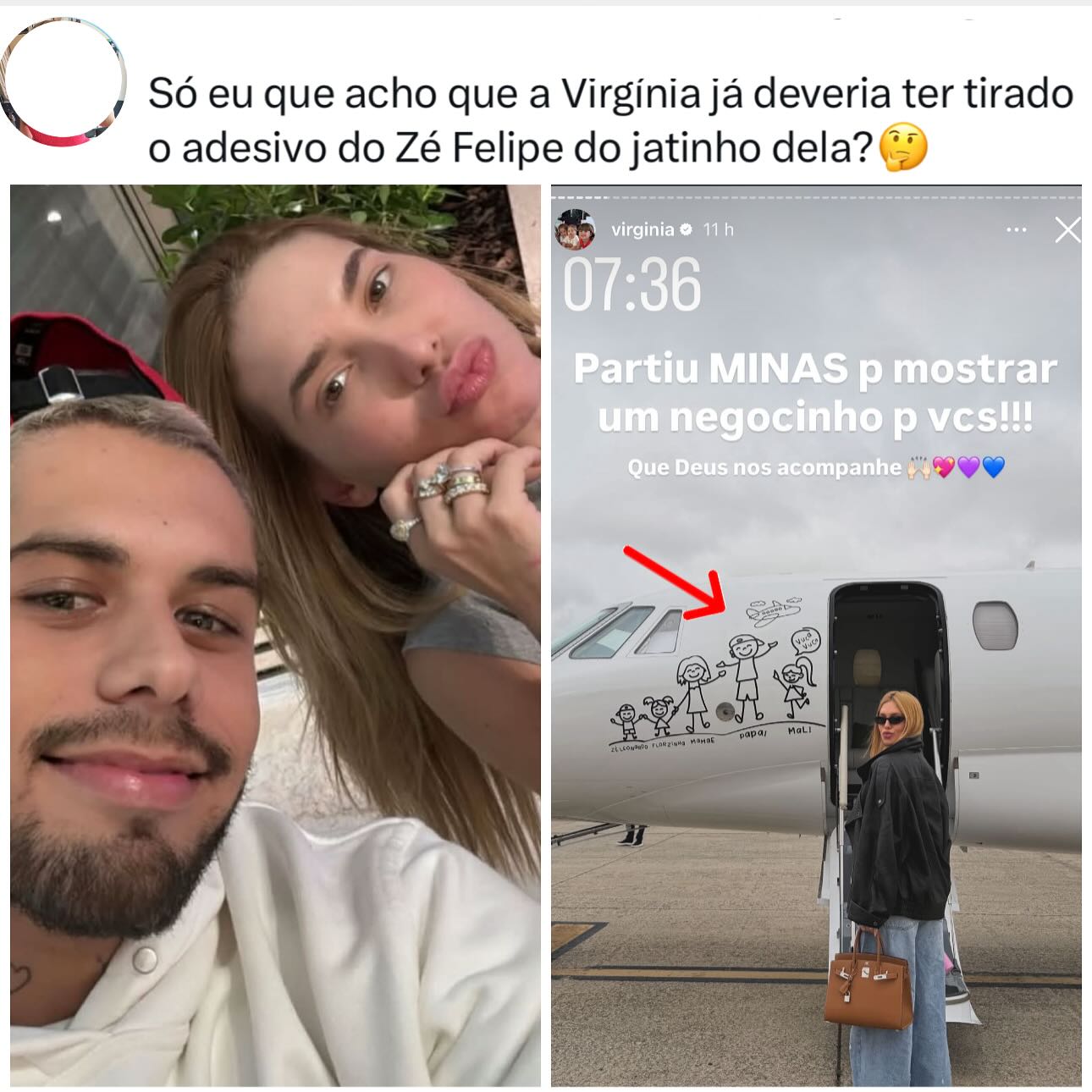🚨 Atenção, galera! Olha só! Depois que Virgínia postou um stories entrando em seu jatinho, os fãs notaram que o adesivo do Zé Felipe ainda está lá! 👀 O que vocês acham disso?🤔😱