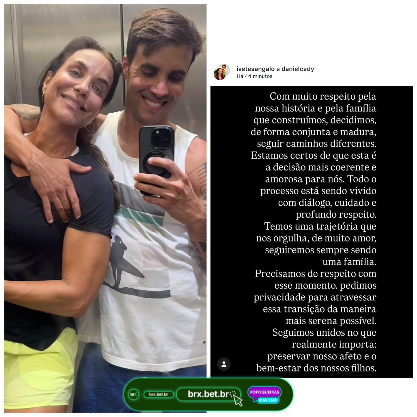 🚨 Fim de um Capítulo! A talentosa Ivete Sangalo compartilhou em seu Instagram que encerrou seu casamento de 16 anos com o nutricionista Daniel Cady. Juntos, eles têm três lindos filhos. O anúncio pegou os fãs de surpresa, já que sempre foram discretos em relação à vida pessoal. O que vocês acham dessa notícia? 🥹💔