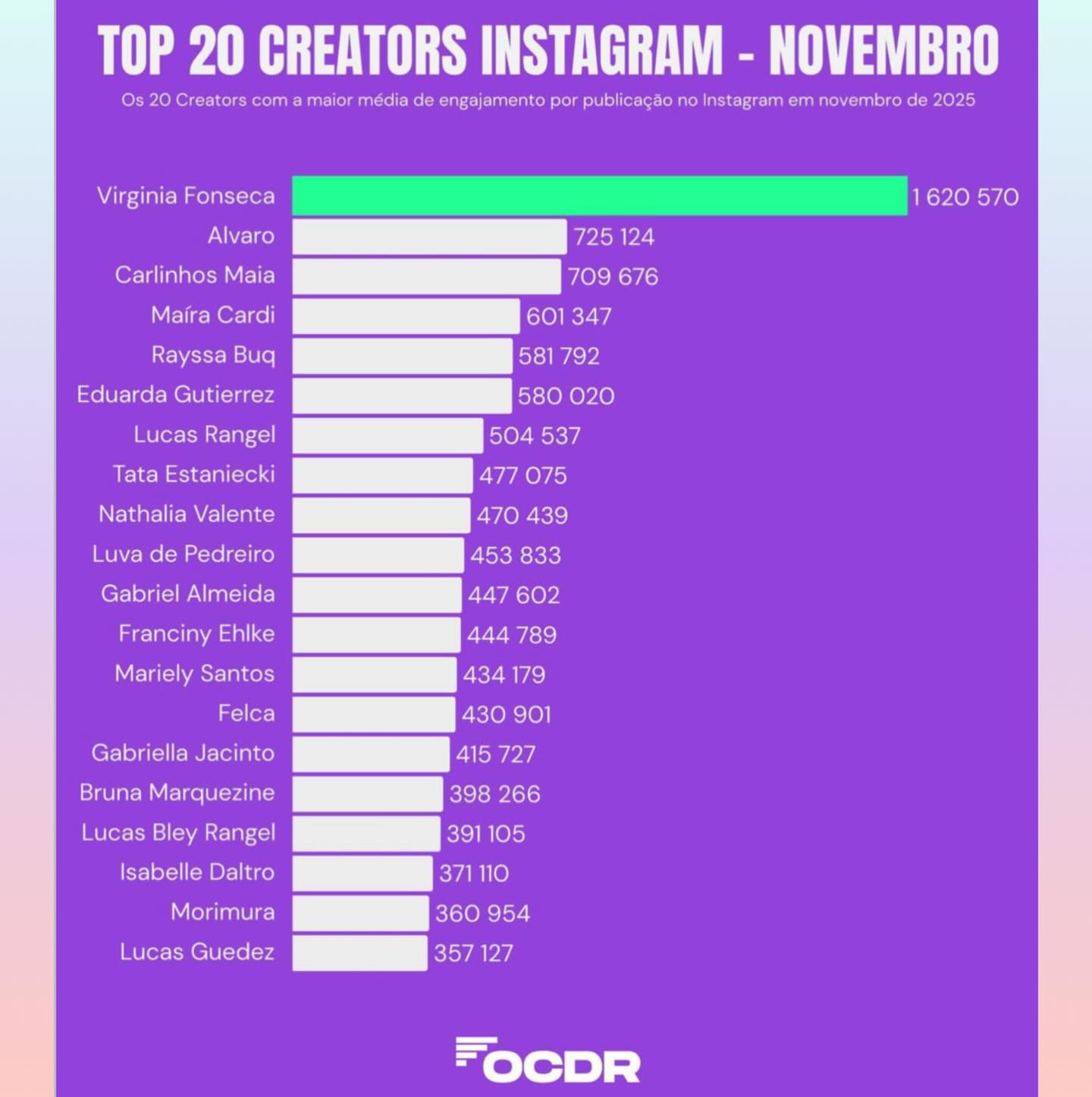 NOVEMBRO FOI DELA! Virgínia Fonseca garantiu o topo do ranking e se tornou a inf…