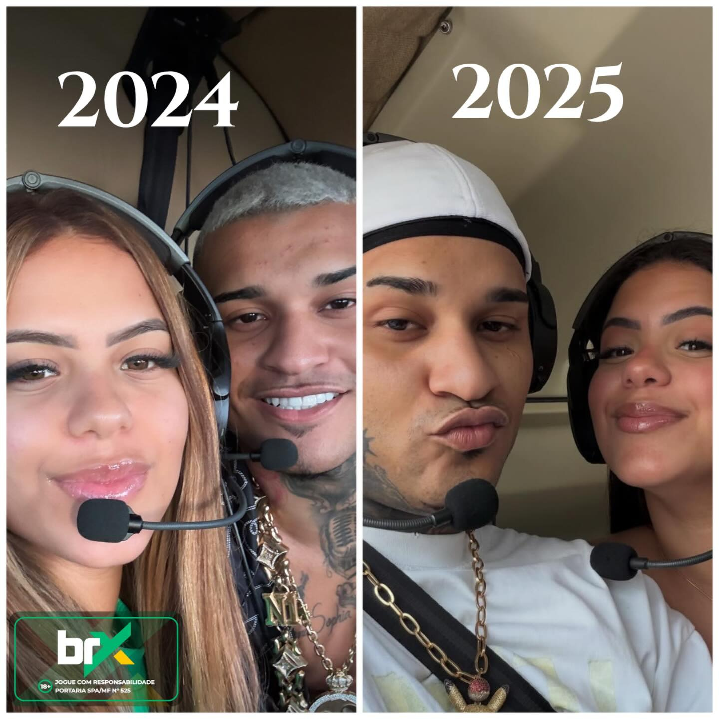 🚨 Sempre juntos! Hoje, Eduarda e Neiff foram vistos a caminho do “Rancho do Maia” de helicóptero, e os internautas notaram algo incrível: exatamente no mesmo dia do ano passado, eles postaram a mesma foto! Coincidência ou destino? 😱👏🏻