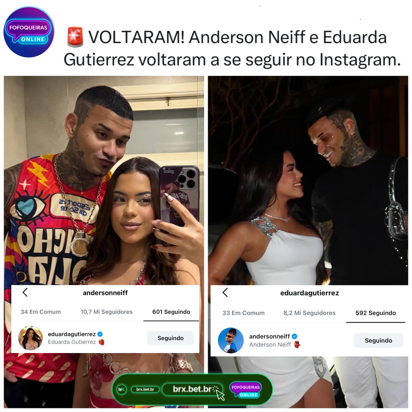 🚨 Uau! Após alguns desentendimentos essa semana, Anderson Neiff e Eduarda Gutierrez decidiram se seguir novamente no Instagram. O que vocês acham dessa reviravolta? 🤔😱