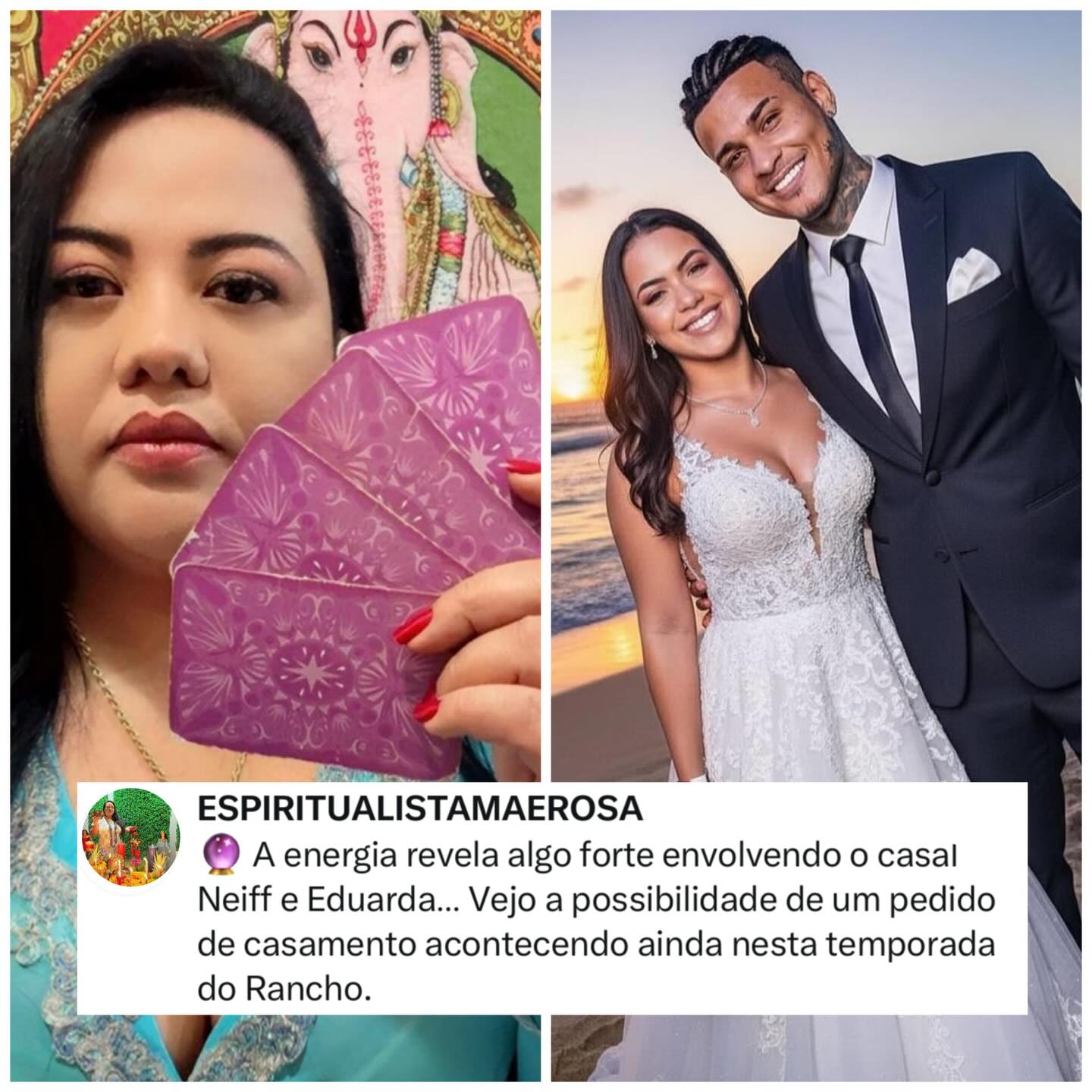 🚨 Preparativos a todo vapor para o CASAMENTO?! A renomada vidente @espiritualistamaerosa revelou que as energias estão favoráveis para um possível pedido de casamento de Neiff para Eduarda nesta temporada do Rancho! O que vocês acham?😍👏🏻 Mal podemos esperar!