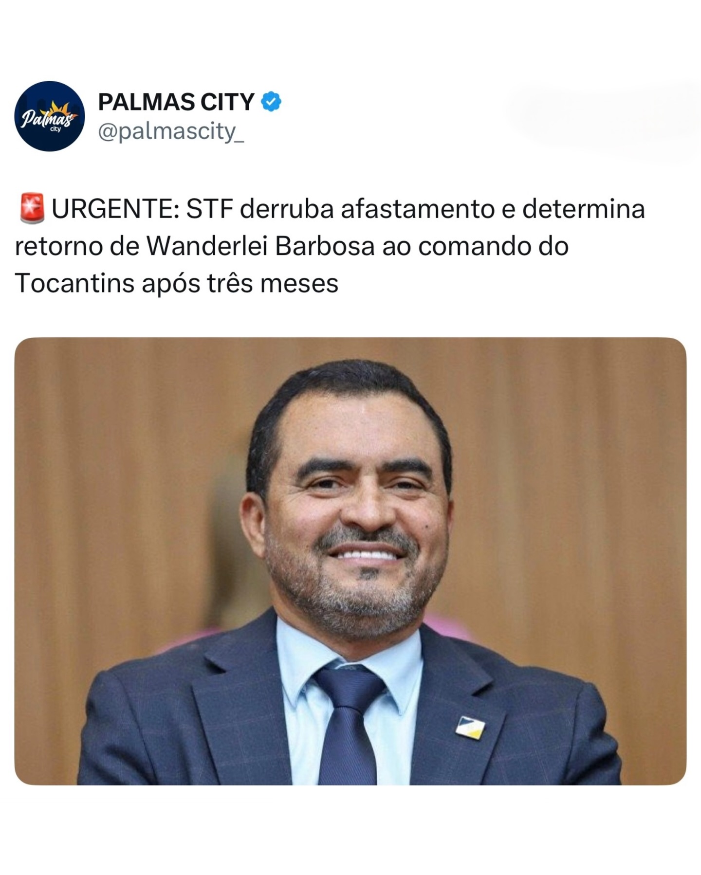 O ministro Nunes Marques, do STF, tomou uma decisão de grande impacto: o governador Wanderlei Barbosa (Republicanos) está de volta ao comando do Estado! 🏛️💼 A liminar concedida hoje (05) suspende o afastamento de 180 dias imposto pelo STJ, que já durava cerca de três meses.