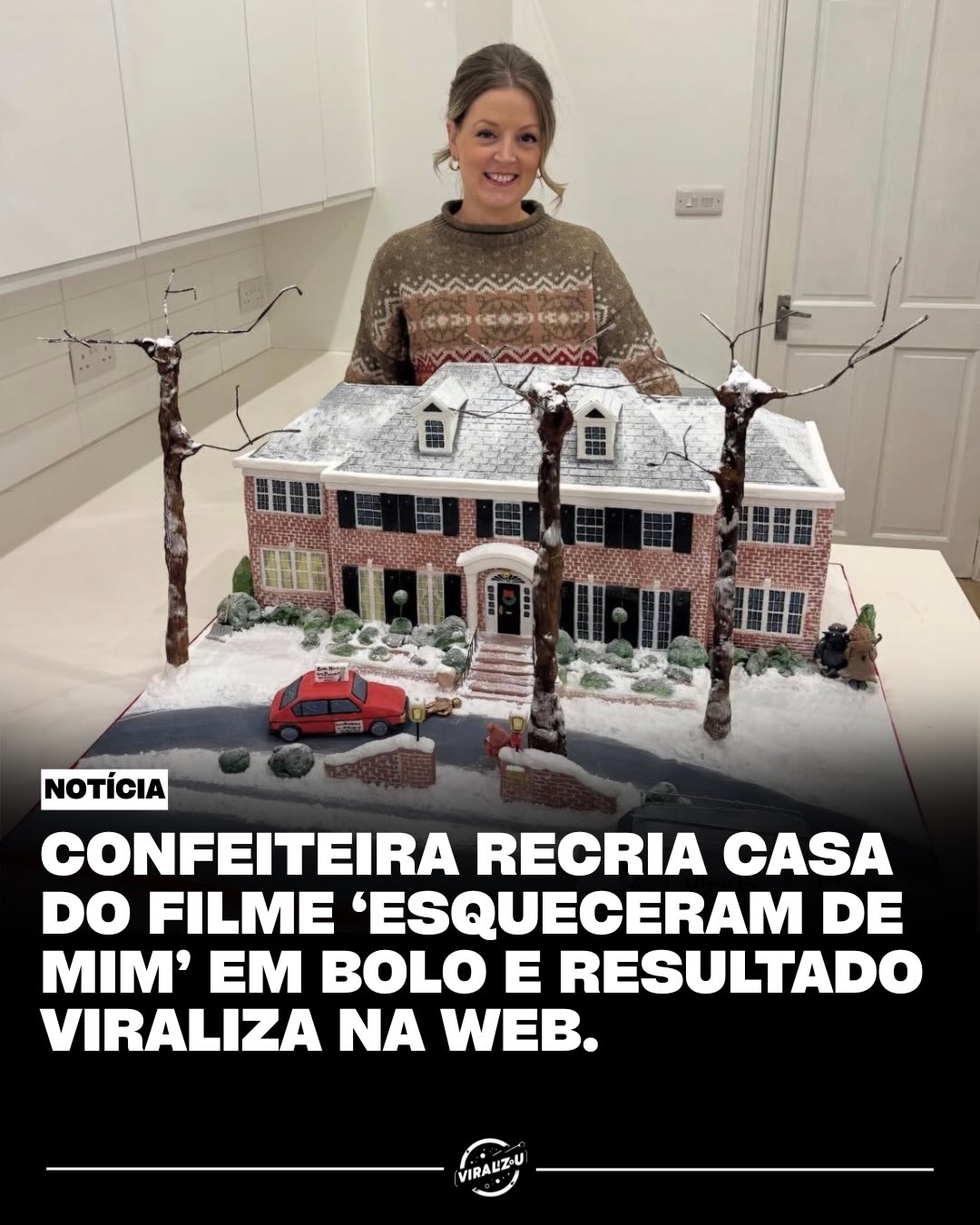 Uma confeiteira britânica está fazendo sucesso ao criar um impressionante bolo gigante em forma da icônica casa de “Esqueceram de Mim”! Grace Hunt, de 35 anos, levou quatro semanas para esculpir e pintar essa obra-prima, que mede 74 centímetros de altura e 29 de largura. Agora, a peça está em exibição na vitrine de sua loja em Beverley.